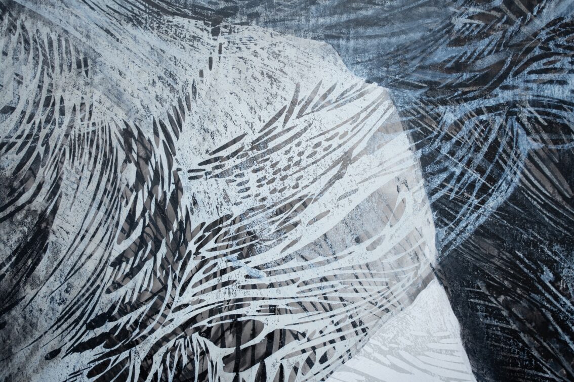Альбіна Ялоза. Без назви, 2022. Полотно, акрил, лінорит, 200 x 143 cм